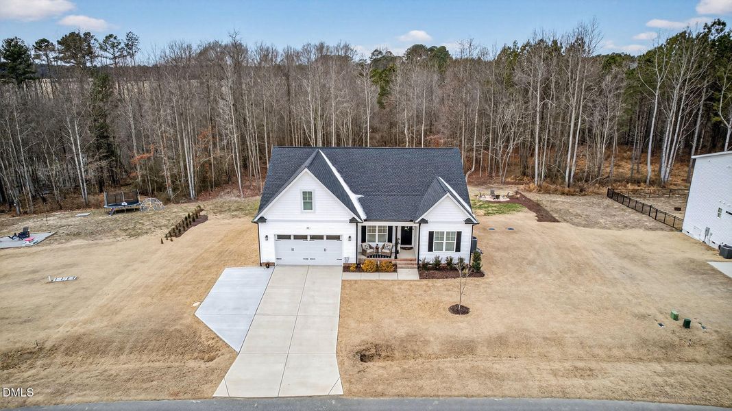 Escape to your own private nature retreat without sacrificing convenience! Nestled on a serene 1.63-acre wooded lot with tranquil water views and winding nature trails, this nearly new and MOVE-IN READY home is packed with upgrades and offers a rare blend of peaceful living and everyday accessibility. Enjoy the sights and sounds of nature and breathtaking sunsets while being just minutes from shopping, dining, entertainment and daily essentials. Designed for comfort and effortless living, this thoughtfully upgraded home features a split floor plan with 3 bedrooms, 2.5 baths, a FIRST-FLOOR PRIMARY SUITE and a versatile finished room over the garage! The light-filled, open-concept layout flows beautifully around a chef-inspired kitchen complete with granite countertops, stainless steel appliances, a spacious walk-in pantry and a generous center island ideal for both entertaining and relaxed everyday living. Unwind while taking in scenic views from the kithen and dining area or cozy up in the living room beside the gas log fireplace as nature provides the perfect backdrop. The first-floor primary suite offers a calming sanctuary with a spa-like bath featuring a walk-in shower, dual sink vanity with quartz countertop, seperate water closet and ample linen closet. Two additional bedrooms share a well-appointed full bath with a tub/shower combination, vanity with quartz countertop and spacious linen closet. Upstairs, a versatile finished room provides flexible living space for a home office, bonus room, or guest retreat while the unfinished attic offers exceptional storage capacity. Outdoor living truly shines here. A screened porch overlooks a beautifully maintained wooded backyard oasis with a poured concrete patio, fire pit, flower and vegetable gardens, sod and peaceful nature trails leading to Steep Hill Branch wetlands. A fenced rear yard with artificial turf and solar powered lighting is ideal for pets or play. With no city taxes, low annual HOA fees, and a completely turnkey interior, this home delivers an exceptional balance of comfort, convenience and affordability! Located just 22 miles from DT Raleigh and 36 miles from RDU, you will enjoy the best of both worlds: quiet country living with quick access to shopping, restaurants, and entertainment. Whether you're looking to downsize or upgrade, this home truly checks every box. Schedule your private showing today and experience it for yourself.