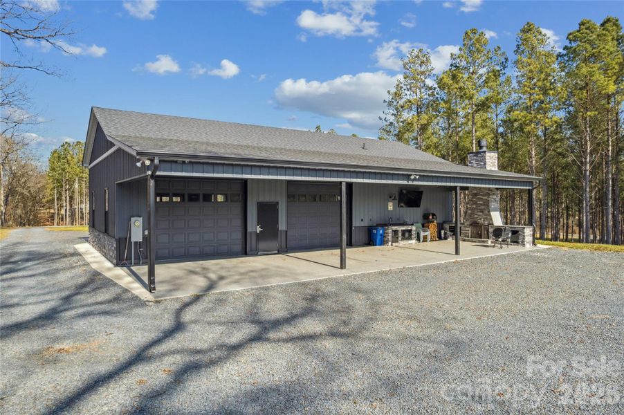 The back of the existing home opens to a welcoming patio with a functioning stone fireplace that anchors the space. This area is perfect for gathering with family and friends. The crackle of fire, the open land, and the quiet country surroundings make this home feel like a private retreat—equal parts refined comfort and peaceful rural living!