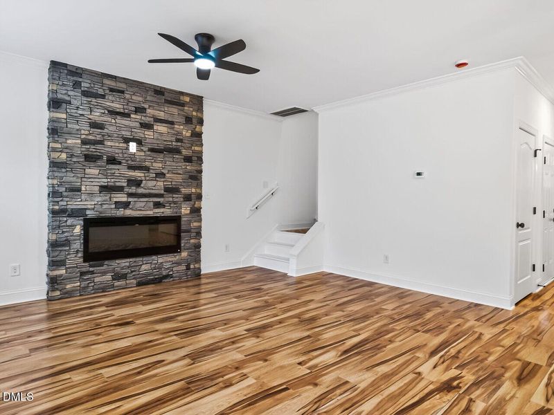 - BasementDeckBackyardWalk-in ShowerElectric FireplaceFireplaceYardPorch