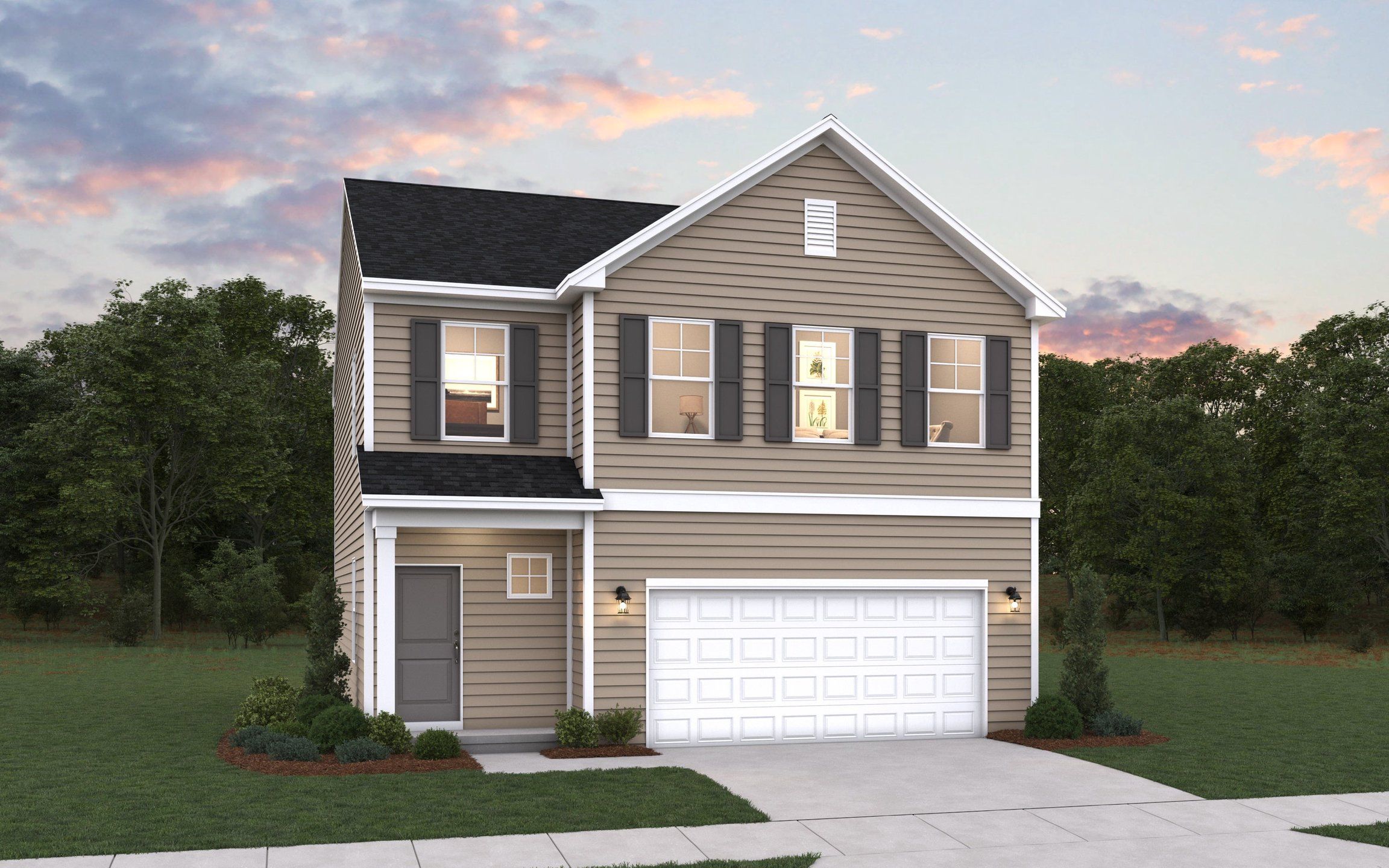 Welcome to The Garrett, a thoughtfully designed two-story home that combines functionality and charm. As you approach, a welcoming front porch invites you inside. Step through the entryway into a soaring two-story foyer that creates a bright, open atmosphere. The centrally located staircase provides easy access to the second floor. The first floor is designed for seamless living and entertaining. It features a spacious open-concept layout with a family room, a dining area, and a modern kitchen with a generous island. A convenient powder room adds to the practicality of the main level. Upstairs, the second floor offers a well-planned retreat for everyone. Two secondary bedrooms share a thoughtfully designed bathroom with dual sinks, perfect for accommodating family or guests. A large storage closet and a centrally located laundry room provide added convenience. The highlight of the second floor is the luxurious primary suite. The bedroom features an elegant tray ceiling, adding a touch of sophistication. The suite also includes a walk-in closet and a spa-inspired bathroom with dual sinks and a walk-in shower. With its functional layout, stylish finishes, and modern amenities, The Garrett is the perfect place to call home.