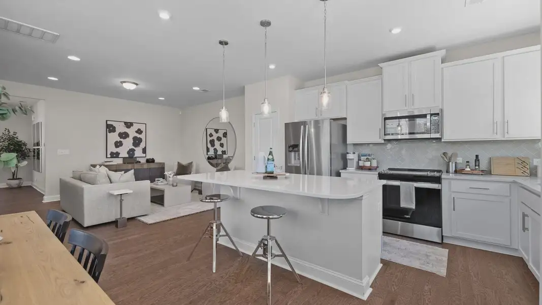 Spacious design with open concept living including a rear entry 1 car garage. The beautiful kitchen with a 9 foot island sits adjacent to the airy family room and breakfast room. The stairs lead from the garage entry door taking you to the second level living including three bedrooms, two full baths and the laundry room. The roomy primary suite boasts a generous walk-in closet and a primary bathroom with a dual vanity.