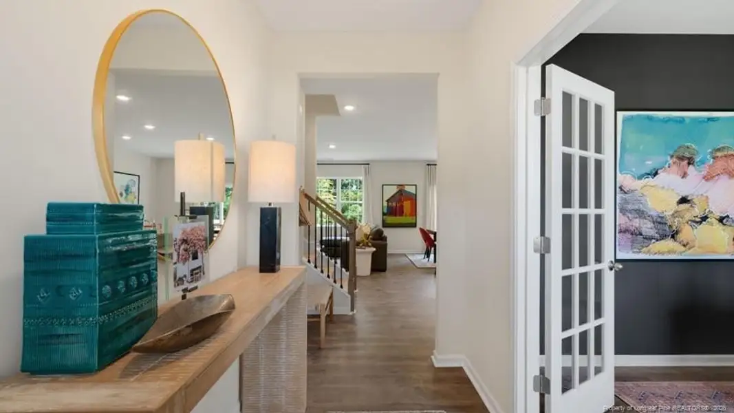 Welcome to 1103 Shoreline Drive at North Gate, located in Vass, NC!Introducing The Hayden, a stunning 5-bedroom, 3-bathroom residence offering a generous 2,511 square feet of living space. Boasting a thoughtfully designed layout, this home features a dedicated home office and a guest bedroom with a full bath on the main level, providing both functionality and convenience. The elegant foyer welcomes you into a space adorned with luxury Revwood flooring throughout the main level, creating a stylish and durable foundation. The heart of the home is the oversized island in the kitchen, topped with quartz countertops, offering a perfect blend of elegance and practicality. From the breakfast area you can step out onto the back patio, perfect for entertaining guests or relaxing after a long day. The second floor hosts the spacious primary bedroom and primary bathroom boasting two walk-in closets, a walk-in shower, dual vanity, and separate water closet for ultimate privacy. The additional bedrooms share a third full bathroom. This home also features a loft space which provides endless potential to create an additional versatile living space such as a family entertainment, work out area, or a reading space. The laundry room completes the second floor. With its luxurious design and ample space, the Hayden is the perfect place to call home. At North Gate, each home will be equipped with smart home technology, putting convenience and control at your fingertips. Experience the perfect fusion of style and functionality in this thoughtfully crafted home. Homeowners can anticipate the future amenities coming to North Gate, including a pool, and playground! Schedule a tour today! Pictures are for representational purposes only