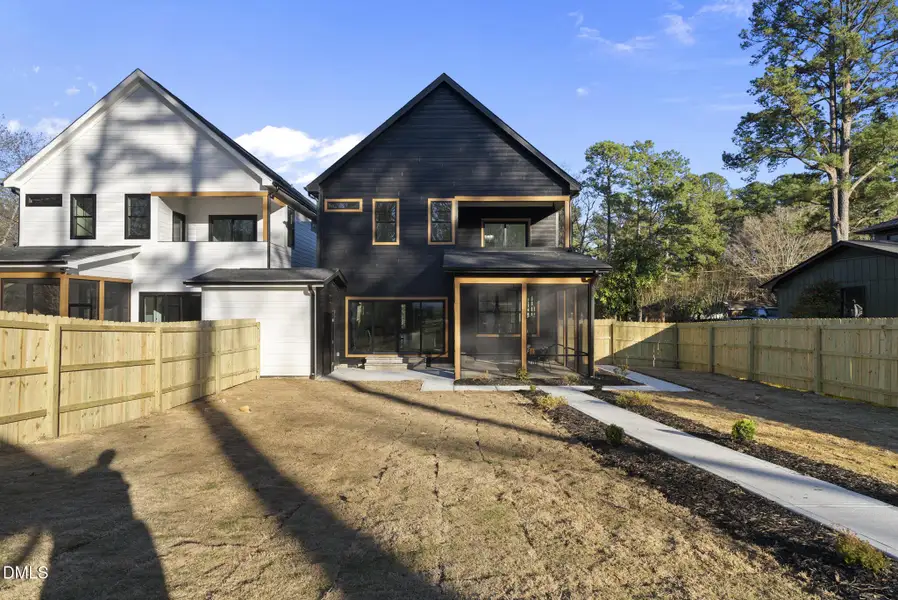 Private Modern Semi Detached Farmhouse Compound with Fully Detached 2BR/2BA Guest Home in North Durham. This is not your typical new construction. Welcome to a rare, fully fenced modern farmhouse compound featuring a 4BR/3.5BA main residence PLUS a fully detached 2BR/2BA guest home (ADU) offering unmatched flexibility for multigenerational living, guests, or income potential. The main home showcases a bright open-concept layout with luxury vinyl plank flooring, expansive black-framed windows, and a statement fireplace with custom built-ins. A dedicated home office/study adds everyday functionality, while the oak tread staircase brings warmth and character. The chef's kitchen is designed to impress with quartz countertops, full-height quartz backsplash, a large island, and premium stainless steel appliances--perfect for entertaining or daily living. Upstairs, retreat to a spa-inspired primary suite with designer tile finishes and thoughtfully curated details throughout. Step outside into your fully fenced private setting, creating a true compound feel--ideal for entertaining, relaxing, or separating living spaces with privacy. The fully detached ADU is a standout feature complete with 2 bedrooms, 2 full baths, full kitchen, laundry, and private living space. Whether used for extended family, guests, or rental income, this is a rare and valuable addition you won't find in typical homes. Located in fast-growing North Durham, just minutes from the upcoming Latta Park development (Publix, dining, retail, and community spaces), as well as convenient access to Durham, Duke, and RTP. $5K lender credit + 1-0 rate buydown with Advantage Lending. With premium finishes, a detached guest home, no HOA, and a fully fenced layout, this property offers a lifestyle and flexibility that is truly hard to find.
