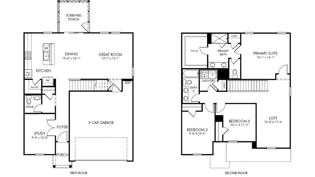 Expansive loft suits movie nights, while the primary suite offers dual sinks and a walk-in closet off the open kitchen. Linen cabinets, marble-look white quartz countertops, light brown EVP flooring with beige carpet in our Chic package.