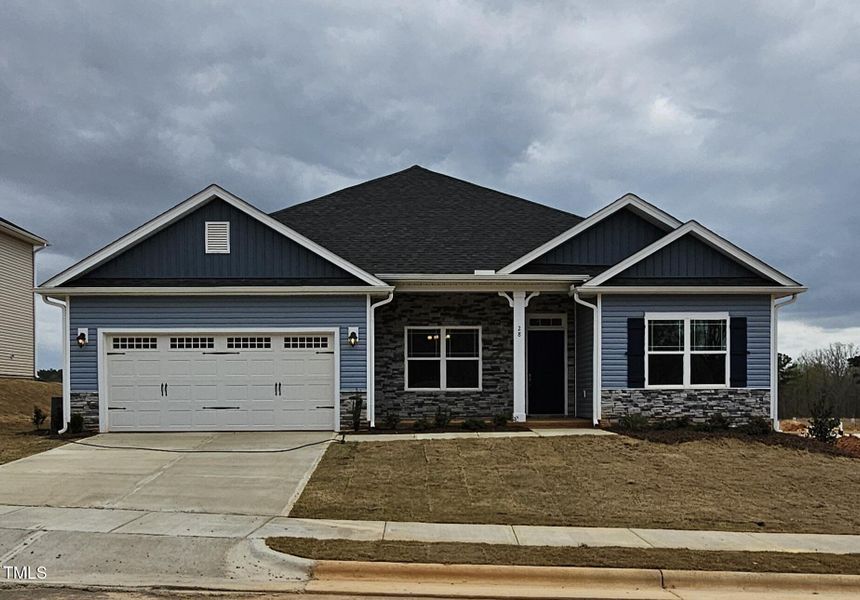 This home is Under Construction. Get ready to fall In love with this ranch home! Its stone and vinyl exterior sits on a .29 acre lot. This hidden treasure boasts 4 bedrooms and 2 bathrooms in a split floor plan of 2,100 square feet. At first sight you will be swept off your feet by the charming covered porch. Upon entering you will quickly find this thoughtfully designed layout includes crown molding in the dining room and primary bedroom, laminate flooring and an open floor plan that enhances both style and functionality. You will adore the formal dining room with wainscoting that connects to the kitchen. The modern kitchen features breathtaking quartz countertops, stainless steel appliances, Ceramic tile backsplash and opens up into the cozy living space. The attention grabbing vaulted ceilings and elegant fireplace bring this beautiful home together. The generous sized primary suite will sweep you off your feet with its ceramic tile shower, garden tub, dual vanities and walk in closet. On the opposite side of the home you will find 3 additional bedrooms with generous sized closets and a full bathroom. The additional features include a two-car finished garage with door opener and a back patio that is perfect for enjoying those serene North Carolina nights. Only 12 minutes from Fuquay shopping and restaurants.