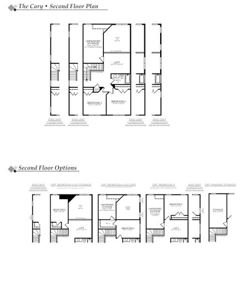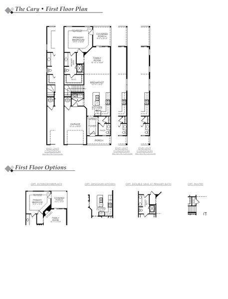 The Cary is a two-story, three-bedroom, two-and-a-half-bath townhome with a one-car garage, first-floor primary suite, spacious family room, and dining area, covered rear porch, and an upstairs loft that overlooks the two-story family room, and an oversized finished storage area.