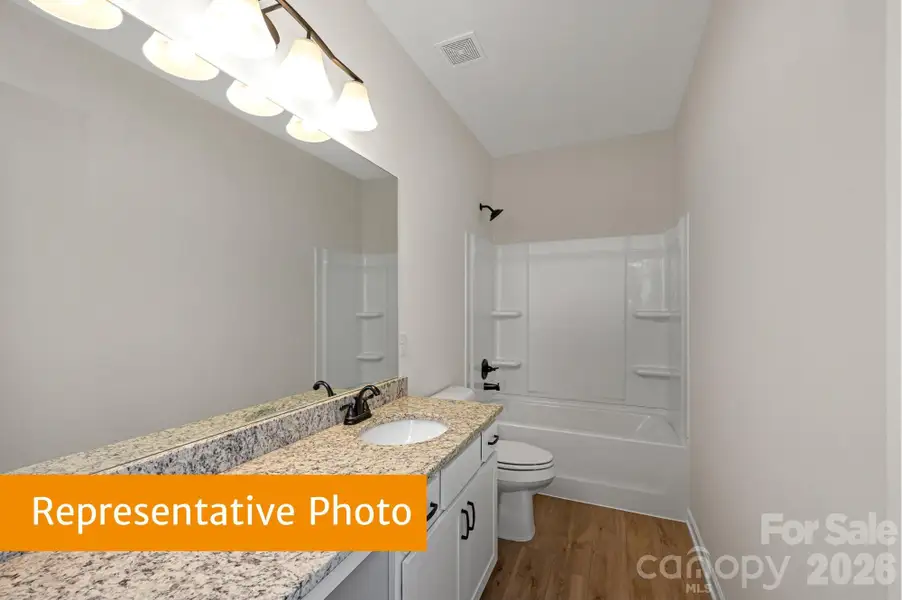 Come tour The Caldwell floorplan at Country Club Village. This homesite is located at the end of the Cul de sac on a homesite that backs into a beautiful, wooded area!! Just off the owner's entrance is a beautiful dining area and a spacious peninsula located in the kitchen with a large pantry for easy grocery drop-off. This homesite offers upgraded black interior finishes that complement the upgraded LVP flooring on the main level. The kitchen is brightened with beautiful solid surface countertops and upgraded 36' cabinets. The open and light-filled family room and kitchen areas have direct access to the backyard with a covered patio for seamless entertaining. Most exciting is that this plan comes standard with the owner's suite on the main level. The owner's suite bath offers homeowner's a large walk-in tile shower and separate water closet. This pairs well with the upgraded quartz countertops nestled within a double vanity with drawer stacks offering additional space. The Owner's suite has a large walk-in-closet that is perfectly crafted for your closet needs. The spacious laundry room is also located on the main level for comfort.