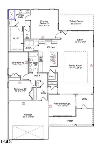 sightlines into the expansive living room, styled with a boxed ceiling accent, gives this floor plan just the right mix of open and purposeful flow. The kitchen has a large island and walk in pantry with ample cabinets for storage and plenty of counter space. An oversized breakfast area overlooks the backyard. The primary bedroom has a private en suite designed with a tiled shower, double sink vanity, t and access to the massive walk-in closet which includes a pass-through into the laundry room. On the opposite side of the house, you will find the second full bath and two additional bedrooms. A two-car garage, sod and irrigation complete this single-story home!