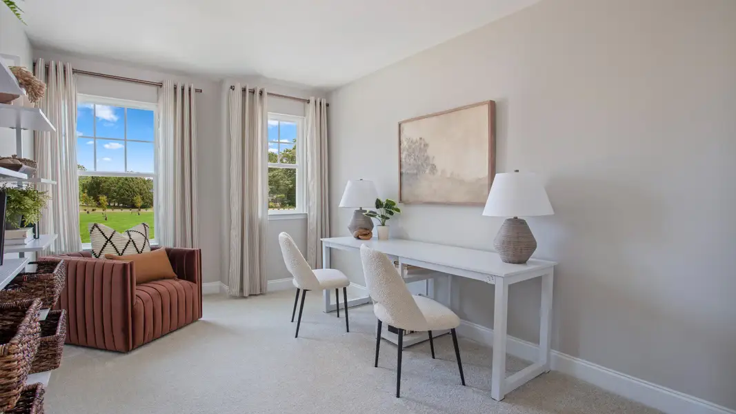 The popular Litchfield townhome features a spacious open-concept layout that blends comfort and functionality. The kitchen includes a 9-foot centered island and flows seamlessly into the bright family room and breakfast area, creating a connected space ideal for both everyday living and entertaining. Thoughtful design details like wood stairs with open railing add style and character throughout the home.