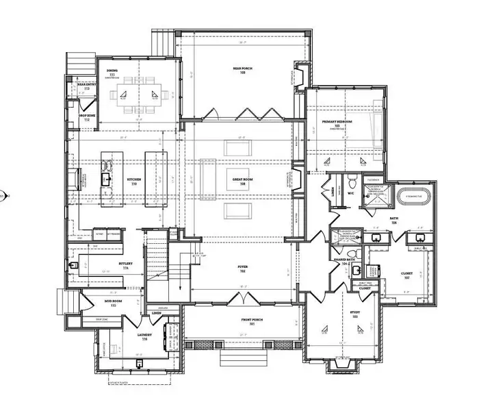 The main-level primary suite offers a private retreat with a spa-style bath, soaking tub, walk-in shower, and generous closet. A dedicated study/second bedroom, mudroom, and drop zone provide flexibility for everyday living.