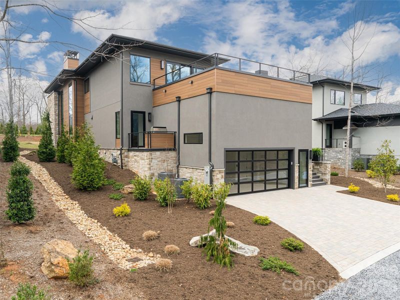 Experience elevated mountain living in The Cliffs of Walnut Cove! This striking modern luxury home, with stunning long-range mountain views, is designed with clean architectural lines, natural stone and warm wood accents, creating an impressive first impression. Inside, custom Schüco windows and Raynaers European doors fill the home with natural light and seamlessly connect indoor and outdoor living spaces. The open-concept living area centers around a soaring gas fireplace, while the chef’s kitchen features Cristallo Quartzite countertops, premium Thermador appliances, and sleek modern finishes and lighting. Outdoor living is equally impressive with a screened covered patio featuring a natural stone fireplace and large sliding doors for seamlessly accessible entertaining. Above it all, a one-of-a-kind rooftop sundeck offers breathtaking long-range mountain views, creating an unforgettable setting for sunset gatherings in the Blue Ridge Mountains. The spacious primary suite is a luxurious retreat featuring a hand-painted accent wall and a spa-like bath with heated floors and walk-in triple head shower. All bedrooms are ensuites, and thoughtful details include large closets with accent lighting and custom built-ins. Additionally, the home features high-end designer lighting throughout, engineered white oak flooring, an upper-level wet bar, elevator, central vac and a bonus exercise/flex room with mountain views. Also, a large encapsulated, walk-in crawl space with a dehumidifier provides exceptional storage. Located just a short walk from the community’s wellness center, this exceptional home blends modern design, luxury craftsmanship, and breathtaking mountain scenery. A Cliffs membership is available for purchase. Member residents of The Cliffs at Walnut Cove enjoy access to world class amenities, including a Jack Nicklaus Signature golf course, state-of-the-art wellness center, indoor and outdoor pools, tennis and pickleball courts, and miles of scenic hiking trails. Membership opportunities extend access to all seven Cliffs communities, delivering an unmatched lifestyle experience.