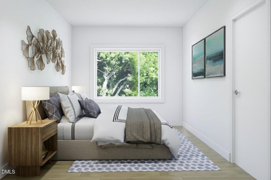 This spacious 2-bed, 2-bath home features a bright, open floor plan enhanced by expansive Pella casement windows and an 8' sliding glass door leading to the balcony with downtown Raleigh views. The modern kitchen showcases slab cabinetry, quartz countertops, stainless steel appliances, and a large island. The primary suite includes a walk-through closet and a private bath with a double vanity and custom tile shower.