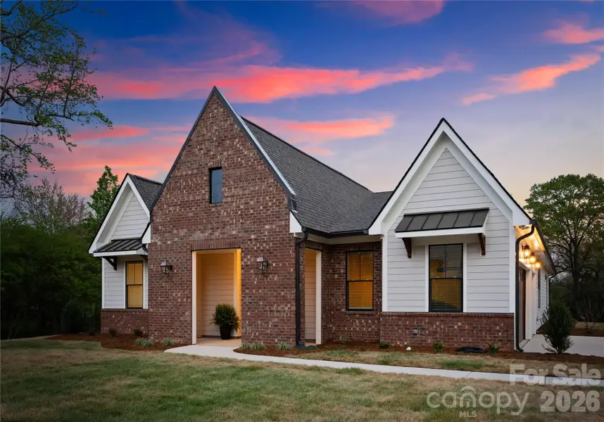 Welcome to Frances Estates in Locust, where luxury and thoughtful design come together in this stunning 3,198 square foot new build by Maverick Building. This 4 bedroom, 3 bath ranch plan offers elevated one level living with designer finishes throughout, including hardwood floors, statement lighting, wallpaper, and upscale plumbing fixtures. The kitchen is a true centerpiece, featuring a 66 inch column refrigerator/freezer, a 48 inch double oven 8-burner gas range with a custom wood hood, ceiling height custom cabinetry, an oversized island, and a spacious walk in scullery/prep kitchen complete with a sink and beverage refrigerator. The transitional exterior showcases brick architecture accented by gas lanterns at the entry for striking curb appeal. The primary suite is designed to impress with a tray ceiling, chandelier, wallpaper detail, a spacious bath, and a large walk in shower with a bench. Set on more than 1.5 acres, the covered back porch overlooks a sprawling backyard framed by trees, creating a private and peaceful outdoor setting. With its custom finishes, refined design, and generous homesite, this home delivers the quality and style today’s buyers are looking for.