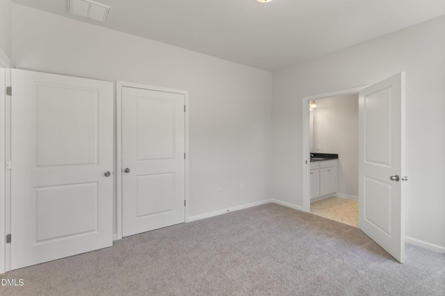 Durable vinyl plank flooring runs throughout the main living areas, while plush carpeting adds comfort to the bedrooms. Tucked at the rear of the home, the private primary suite features a spacious walk-in closet and an elegant ensuite bath complete with quartz countertops and a large walk-in shower.