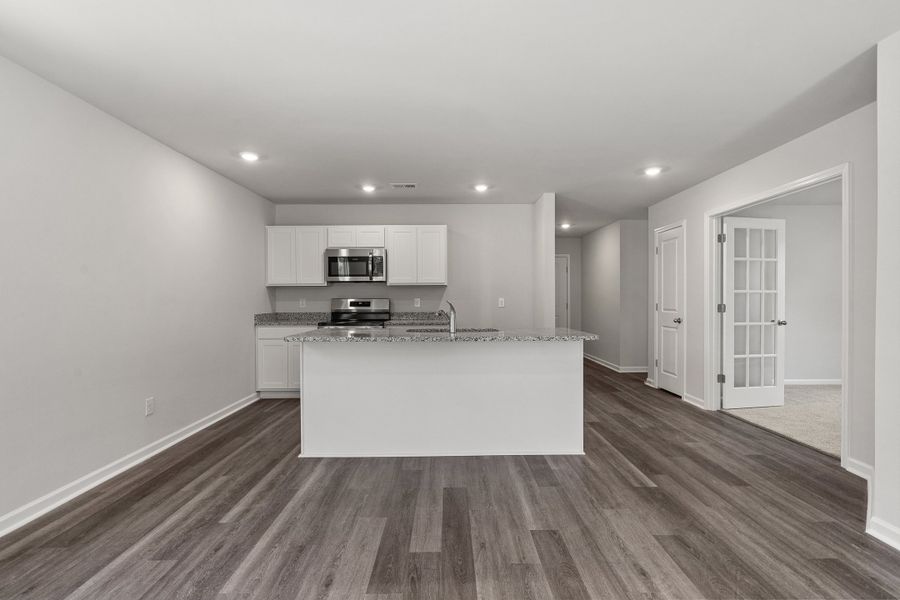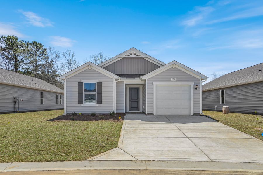 Welcome home to the Efficient floor plan by Dream Finders Homes in Seaside Palms—a thoughtfully designed single-story layout offering 1,265 square feet of practical comfort and modern style. Featuring 3 bedrooms and 2 full bathrooms, this home replaces the study with an additional bedroom, creating even more flexible living space for family or guests.Step inside from the covered front porch into a bright, inviting foyer that sets the tone for the open-concept design. The heart of the home showcases a seamless flow between the spacious kitchen with a large island, dining area, and living room—perfect for everyday living and effortless entertaining.The primary suite offers a private retreat complete with a generous walk-in closet and a well-appointed bathroom featuring a double vanity. Two additional bedrooms provide versatility for guests, family, or a home office setup.Enjoy added convenience with a 1-car garage, 9-foot ceilings, and 36-inch upper kitchen cabinets that elevate both style and storage. Step outside to a paved patio, ideal for relaxing or outdoor gatherings.With its efficient use of space and modern finishes throughout, this home delivers comfort, simplicity, and low-maintenance living in the desirable Seaside Palms community. Photos are representative of the Efficient floor plan.