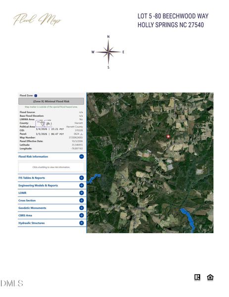 Located at Lot 5, 80 Beechwood Way, the property sits in a tranquil, tree-lined setting while remaining conveniently close to the amenities of a growing area. The lot is not located in a floodplain and offers generous space for a custom home surrounded by nature.