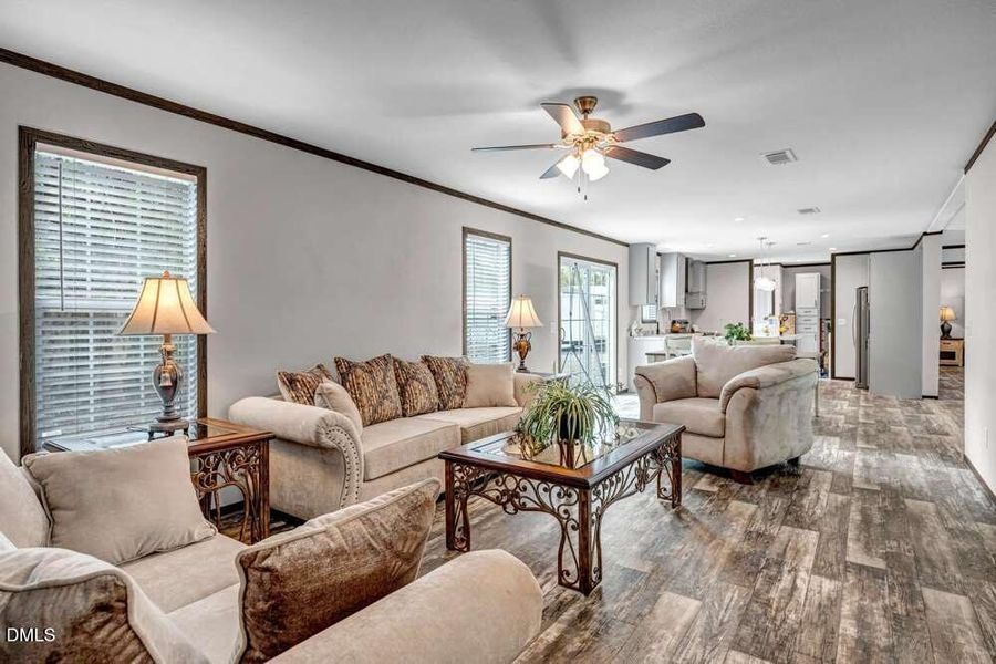 This new construction manufactured home will include an upgraded interior and exterior package featuring 9' ceilings, modern flooring, enhanced cabinetry, stainless steel appliances, black-accent design elements, glass front door, board and batten shutters, and black window package.
