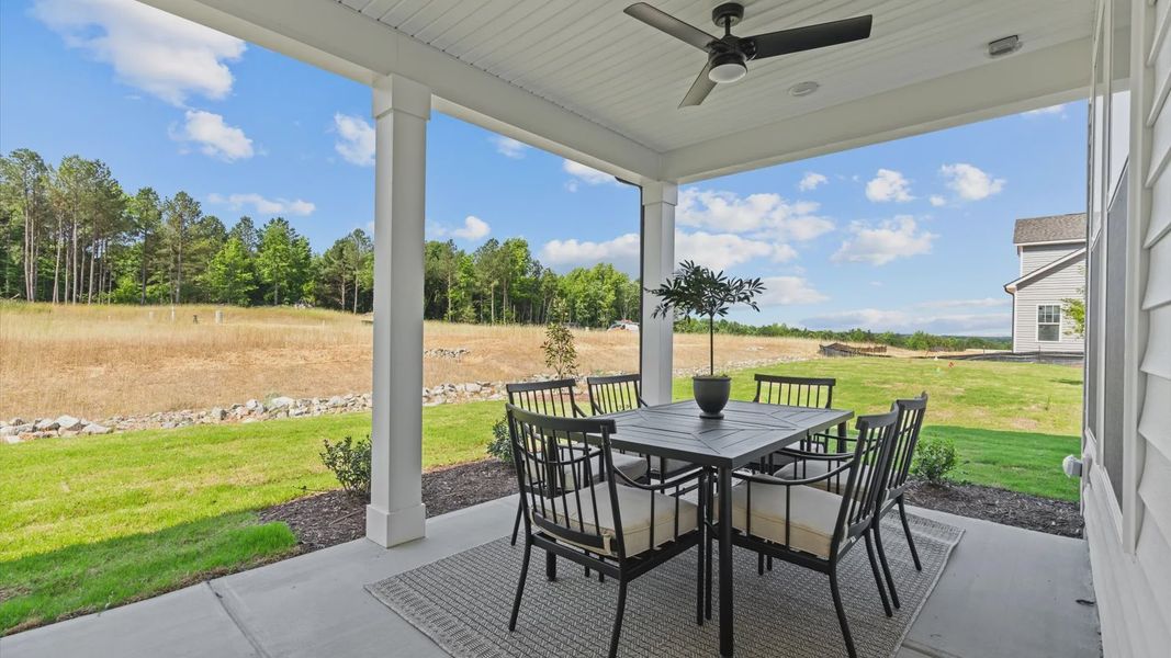 The Beramont plan welcomes you with a spacious foyer entry that opens into a bright and inviting main living area. The kitchen is the centerpiece of the home, featuring an extended oversized island, upgraded cabinetry with hardware, quartz countertops, and a GE Café gas range. The layout flows seamlessly into the gathering space and breakfast area, with a slider leading to a large covered porch and backyard—perfect for relaxing or entertaining.