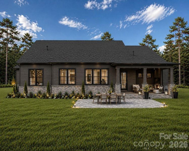 Where this home truly sets itself apart is in its outdoor living. The rear elevation is intentionally designed as a clean, continuous plane, allowing the covered porch, positioned to one side, to feel like a purposeful extension rather than an afterthought. From there, the space flows naturally into an expansive paver patio, creating multiple zones for dining, lounging, and entertaining. With a flat, usable backyard and ample room for future additions such as a pool, the setting offers both immediate enjoyment and long-term potential.