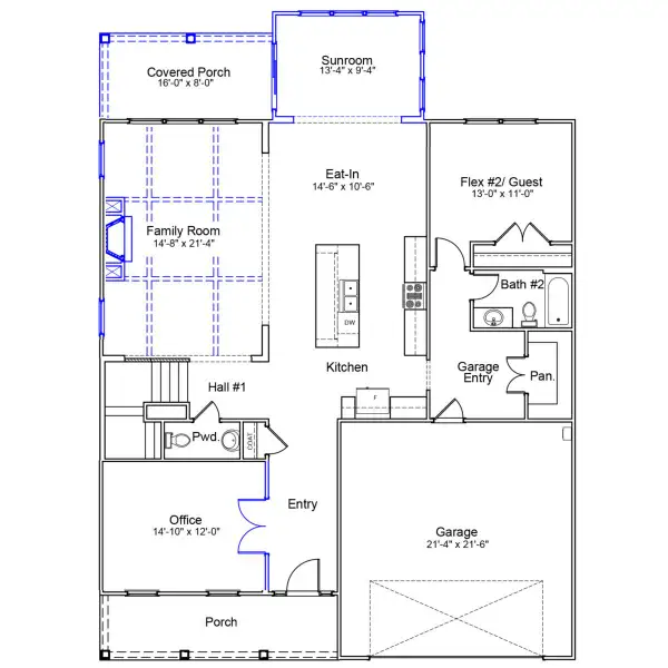 This thoughtfully designed two story home balances open concept living with flexible, private spaces. The welcoming front porch opens to a defined entryway, with a private home office located just off the foyer—ideal for working from home. At the center of the home, the spacious great room flows seamlessly into the eat in kitchen, featuring a large island, ample counter space, and a pantry. A covered porch and sunroom extends the living area outdoors, perfect for relaxing or hosting. A convenient powder room and attached two car garage complete the main level. Upstairs, the private primary suite offers a generous bedroom, walk in closet, and ensuite bath. Three additional bedrooms, including two with walk closets, provide comfortable accommodations for family or guests. A versatile bonus room, two full baths, and a centrally located laundry room round out the upper level, offering everyday convenience and space for everyone.