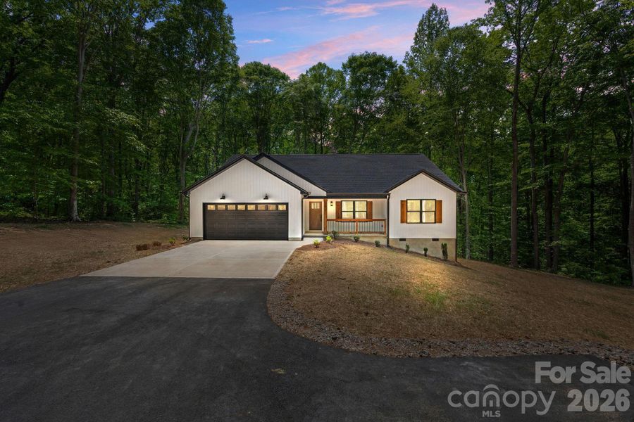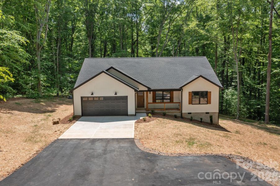 Gorgeous new custom home on a large wooded lot. No HOA! Quality & craftsmanship are evident from upgraded trim, custom closet shelving, stylish colors & fixtures, beautiful flooring, shaker cabinets and quartz counters, you must see to fully appreciate the quality. This home has the aesthetic appeal you are looking for. Board and Batton front siding with cedar accents! Luxurious owners suite has vaulted ceilings, large walk in closet with custom shelving, tiled shower and separate toilet room. Open floor plan with covered front porch and large deck on rear overlooking your private wooded yard. Neutral paint throughout. Kitchen has white shaker cabinets, island and lots of counter space. Huge private lot with mature trees surrounding you and a peaceful meandering creek! You will not be disappointed.