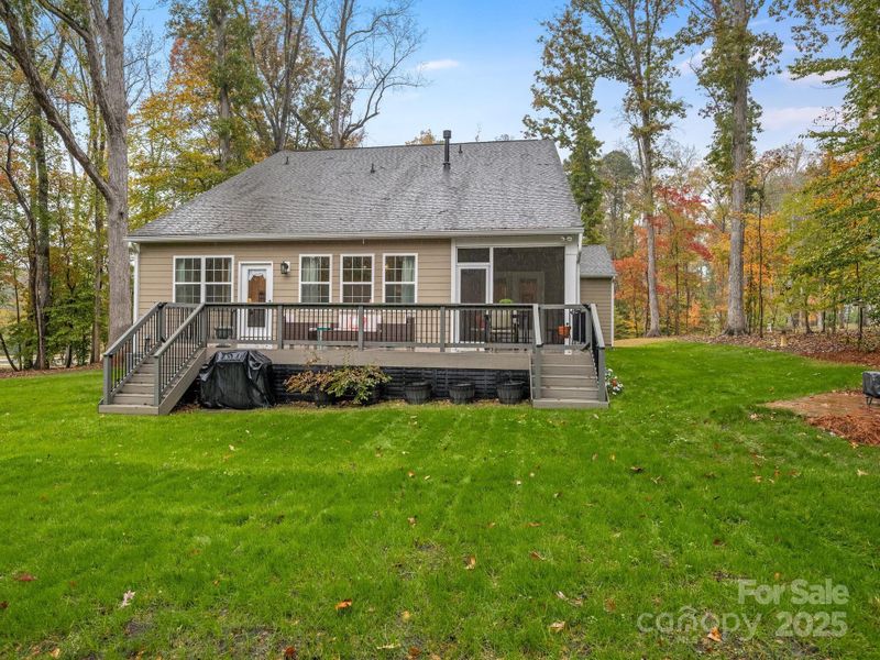 Step inside to find an inviting open floor plan filled with a cozy fireplace and natural light. The chef’s kitchen is the heart of the home, featuring a large island, gas cooktop, stainless steel appliances, walk-in pantry, breakfast nook, and abundant cabinetry — perfect for cooking, gathering, and entertaining. The main-level layout is exceptional, offering three bedrooms on the first floor, including a serene primary suite with a cozy sitting area that opens to a relaxing screened porch. The spa-like primary bath includes double vanities, a water closet, and a spacious walk-in closet. Beautiful floors flow throughout the first floor and into the upstairs bedroom, adding warmth and elegance. Upstairs, you’ll find a versatile bonus room — ideal for a home gym, office, or media space — plus an additional bedroom and full bath. Enjoy outdoor living at its best with a peaceful wooded backyard, a new composite deck, and a dehumidified, enclosed crawl space providing year-round comfort and peace of mind. The garage features finished walls and a 50-amp EV charging plug, combining practicality and modern convenience. Come experience the charm, space, and tranquility of life at The Estates at Arlington Woods — where thoughtful details and timeless design make this home truly special.