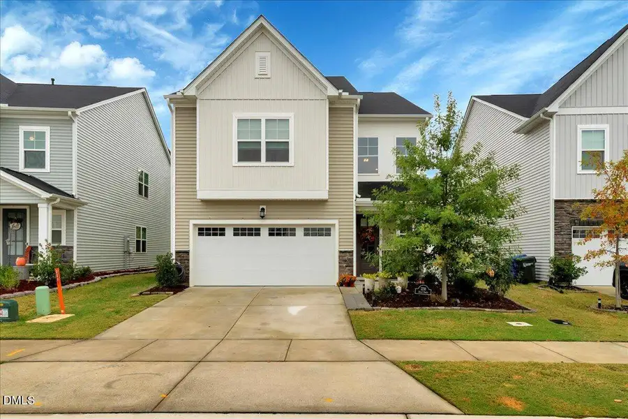 LIKE-NEW HOME NEAR DUKE, RTP, RDU, BRIER CREEK, SOUTHPOINT, AND DOWNTOWN RALEIGH HAS 1ST FLOOR BEDROOM, LOW-MAINTENANCE YARD, ALL CUSTOM CLOSETS, GENERAC GENERATOR, CUSTOM LIGHTING THROUGHOUT, GAS LINES FOR DRYER & GRILL, TREX DECK, AND A HOST OF COMMUNITY AMENITIES (INDOOR & OUTDOOR POOLS, A FULL GYM, TENNIS & BASKETBALL COURTS, A FENCED DOG PARK, AND MORE). -- Thoughtfully crafted for modern living, this 4-bedroom, 3-bath home combines luxury, comfort, and convenience. Step inside the grand, light-filled two-story foyer and experience the elegance of this spacious open-concept layout. The gourmet kitchen features a walk-in pantry, stainless farmhouse sink, and seamless flow into the dining and living areas centered around a cozy gas fireplace. The main level also includes a mudroom with built-ins, a bedroom or office option, and a screened porch overlooking a professionally landscaped, fenced backyard with a wooded buffer for privacy. Entertain outdoors on the custom Trex deck—complete with a natural gas hookup for easy grilling. Upstairs, a generous loft offers flexible living space, while each bedroom boasts custom closets for organization and style. The bright primary suite features a tray ceiling, luxurious ensuite bath with private water closet, relaxing soaker tub, dual vanity, and abundant natural light. Every detail has been elevated, from custom recessed lighting on dimmers throughout, to the full-house Generac generator, a gas line for the dryer, and even the garage includes custom storage solutions. This home delivers exceptional quality and everyday ease. THIS HOME HAS UPGRADES AT EVERY TURN. YOU WON'T FIND ANOTHER ONE LIKE IT IN THE NEIGHBORHOOD!!
