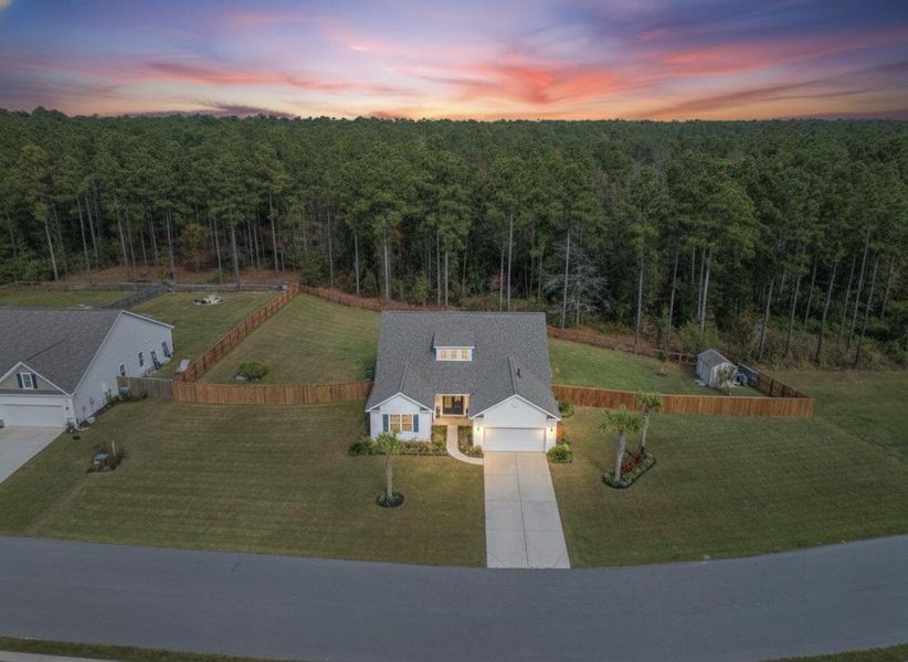 Sweeping lake views in front, serene wooded privacy in back, this spacious 0.63-acre homesite in French Quarter Creek is a rare find. The light-filled interior features an expansive open-concept layout anchored by a beautiful kitchen with granite counters, gas range, oversized island, a dedicated food pantry & separate appliance pantry. Dual sliding glass doors open to a generous screened porch and a fully fenced backyard with a patio, perfect for relaxing or entertaining. The main level includes a private primary suite with a walk-in closet and dual vanities, two bright guest bedrooms, a full bath, and a guest half bath. Upstairs offers versatility with another guest suite, a cozy loft, and a large FROG ideal as a 5th bedroom, office, or media room. Less than 10 miles from Mt Pleasant.
