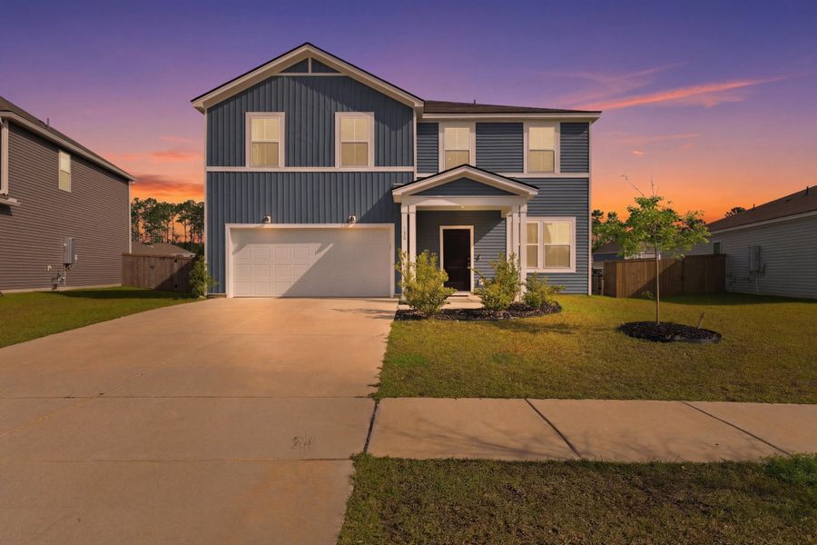 Stunning Whimbrel Floor Plan -Move-In Ready & No Carpet! Fresh paint, natural light. Welcome to 130 Eldridge street, a beautifully maintained 5-bedroom home featuring stylish upgrades throughout. The exterior showcases Harbor Blue board-and-batten siding, giving the home exceptional curb appeal and a modern coastal feel. In the neighborhood of Bradford pointe. As you walk into this beautiful home, you are greeted by a well-designed dining area or office space, perfectly positioned at the front of the home. Moving further inside, the home opens into a spacious open-concept living and entertaining area centered around a stunning kitchen. The gourmet kitchen features gray cabinetry, stainless steel appliances, a gas range, and a large quartz island with matching quartz countertops,creating the perfect space for entertaining, cooking, and gathering with family and friends. The flexible floor plan offers 5 bedrooms, including a downstairs flex space that can easily serve as a 5th bedroom, guest suite, office, or playroom, while the upstairs loft area provides additional living space ideal for a media room or family retreat. Every bedroom features generous closet space, offering excellent storage throughout the home. One of the standout features of this property is that there is no carpet anywhere in the home, making it both stylish and easy to maintain. 2 Car Garage, Fully fenced, large back yard, Blinds and center light/Fans lots of upgrades you wont get with new construction. Tankless water heater. Located in a welcoming community of Bradford Pointe in Nexton, residents enjoy amenities including a neighborhood pool, golf cart access, and scenic walking trails. The home is also conveniently located just minutes from I-26, shopping, restaurants, and everyday conveniences, making commuting and daily errands effortless.