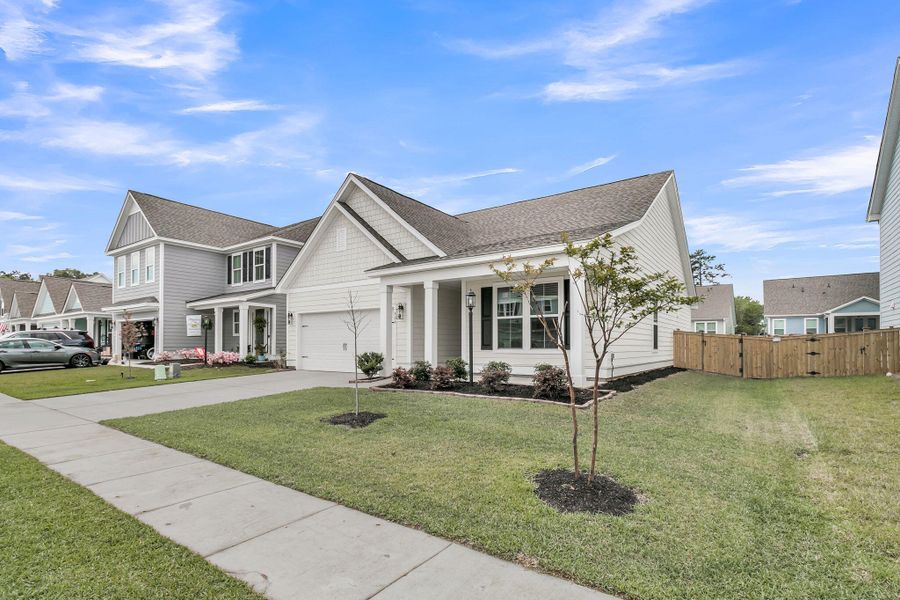 Embrace this rare opportunity to own one of the few traditional single-story homes within the very desirable Foxbank Plantation community! This beautifully appointed home, built in 2024,boasts a smaller low-maintenance footprint of 1,485 sq. ft. while providing generous upgrades within the 3BR/2BA open-concept ''Elliott'' plan. With a bright, functional layout perfect for everyday living and entertaining, you'll enjoy your morning coffee watching the sunrise on your full-length covered front porch, then sip your favorite wine while watching the sunset from your large covered back patio. The kitchen features quartz countertops and upgraded Frigidaire Stainless-Steel appliances, including a 5-burner Gas Range, Convection Oven, and Microwave. A large island houses the dishwasher and...a 9" deep farmhouse sink, offering you the ability to stay connected as you overlook the adjoining dining and living areas. Cabinet upgrades offer you ample storage and a tall in-cabinet pantry that complements a beautiful tile backsplash. Need a refrigerator? The year-old side-by-side stainless Samsung refrigerator will convey at closing at no additional cost to the Buyer.