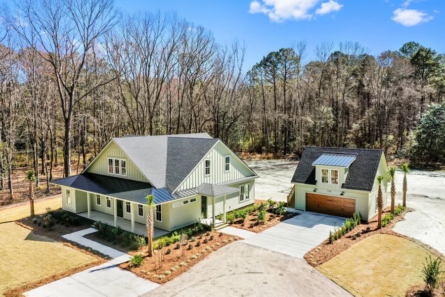 Step in to your NEW LowCountry home, where modern elegance and timeless charm come together on this 3-acre estate custom home, boasting 4 bedrooms, 3.5 bath, & 3395 square feet. This home, on an estate sized lot, is minutes from historic downtown Charleston and area beaches/ shopping. The home has a thoughtfully designed open-concept layout with a gourmet kitchen that is a chef's dream. The first floor primary suite has a sleek garden tub, separate glass shower and enormous walk in closet. This area is adjoined to a spacious laundry mudroom, but tucked away from the main living area. Upstairs you will find three additional bedrooms with two additional full baths and a spacious and separate media/playroom area.The kitchen is a grand meeting place with large work spaces on the island and counters over looking the backyard and main living room; ideal for entertaining. This kitchen will really serve as an anchor for gatherings with friends and family. Monogram appliances with a 6-burner propane cooktop, double wall oven, a cabinet microwave and a "hidden" secret door pantry make this a really unique space.