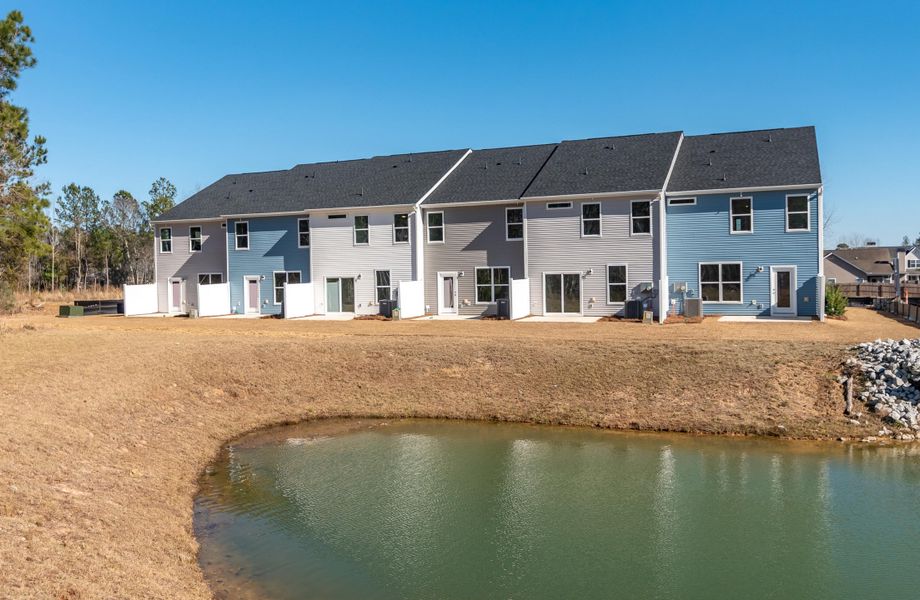 Chatham plan situated on end of the building on a quite pond. Open and spacious 3 Br townhome with a 1 car garage. Low HOA dues and close proximity to Goose Creek amenities, Weapons station.