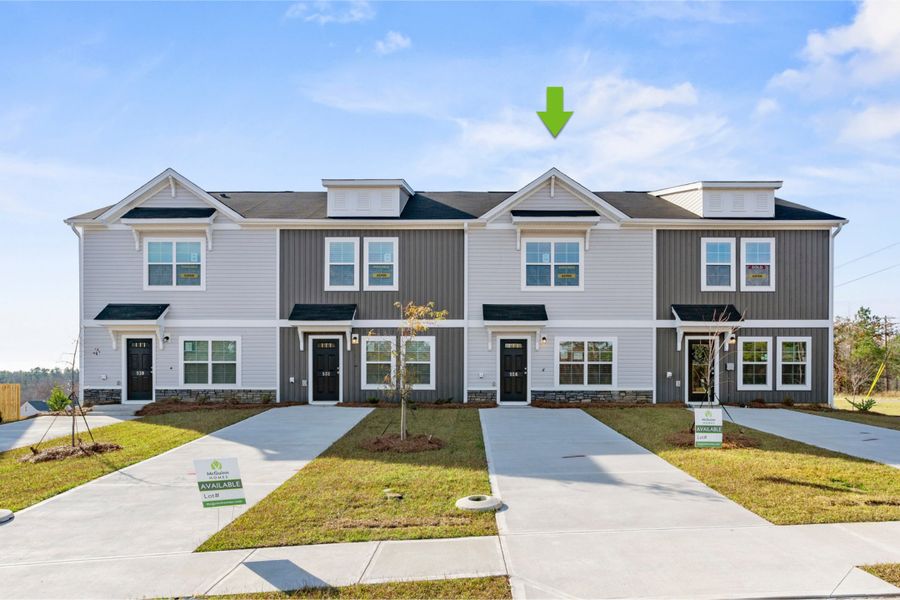 Move-In Ready! The Aspen is a beautifully designed living space, offering 1,300 sq. ft. of modern, open-concept living with three bedrooms and 2.5 bathrooms. Step inside to a welcoming foyer that flows effortlessly into the bright dining area and stunning plantation island kitchen, complete with a walk-in pantry for added convenience. The great room spans the entire back of the home, bathed in natural light and perfect for relaxing or entertaining. A powder bath is tucked off to the side, while the back door leads to a private patio, creating the perfect outdoor retreat.