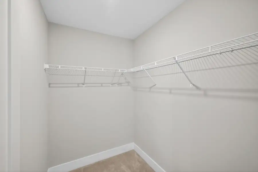 The Amelia is a three-bedroom, three-bath home with a first-floor primary bedroom, an additional bedroom on the first floor, an open kitchen, a family room, and an eating area. The second floor features a bedroom, full bath, and spacious loft area.