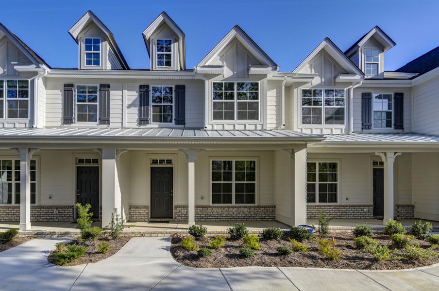 The Burlington is a two-story, three-bedroom, two-and-a-half-bath townhome with a home office, kitchen with island and pantry, and spacious family room. The second floor features all three bedrooms, including the primary suite.