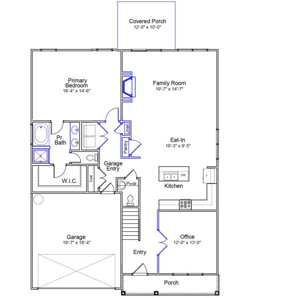 This primary-on-main home offers four bedrooms and two-and-one-half bathrooms. An office with double French doors greets you as you enter from the covered front porch! Step into the open kitchen, which features an eat-in area, an island with pendant lighting, and a pantry—all overlooking an open living room space anchored by a beautiful gas fireplace. A main-floor primary bedroom with a ceiling fan leads you into the primary bathroom suite, complete with a large walk-in tiled shower, a water closet, dual vanities, and a walk-in closet. Each bedroom upstairs features a walk-in closet and shares another full bathroom. In addition, the second floor contains a loft space and a large floored room for added storage! We've even added a covered porch out back for entertaining and enjoying relaxing evenings. The front and back yards are fully sodded, and sprinkler systems are included. Enjoy living on a peaceful cul-de-sac! Reach out for more information—this Pickens in Ellington is one you don't want to miss!