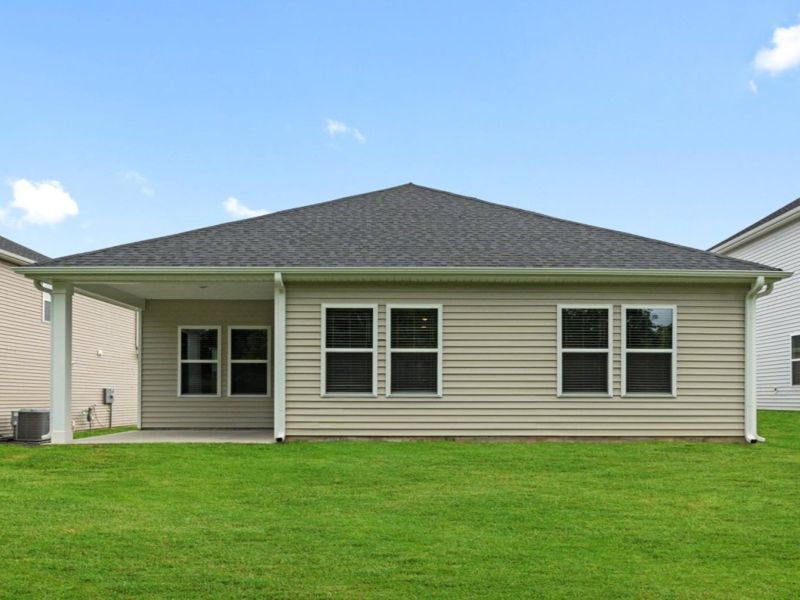 Enjoy happy hour on the Chandler's covered back patio. In the primary suite, dual sinks and a walk-in closet simplify busy mornings. White cabinets with granite countertops, Oak EVP Plank flooring and carpet in our Cool (2) Package.
