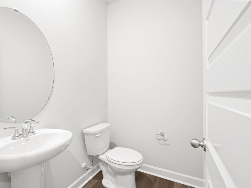 Entertaining comes easy in the Brentwood's open-concept kitchen and great room. White cabinets with white quartz countertops, Bishop Ridge Fresh Pine EVP flooring and carpet in our Balanced (1) Package.