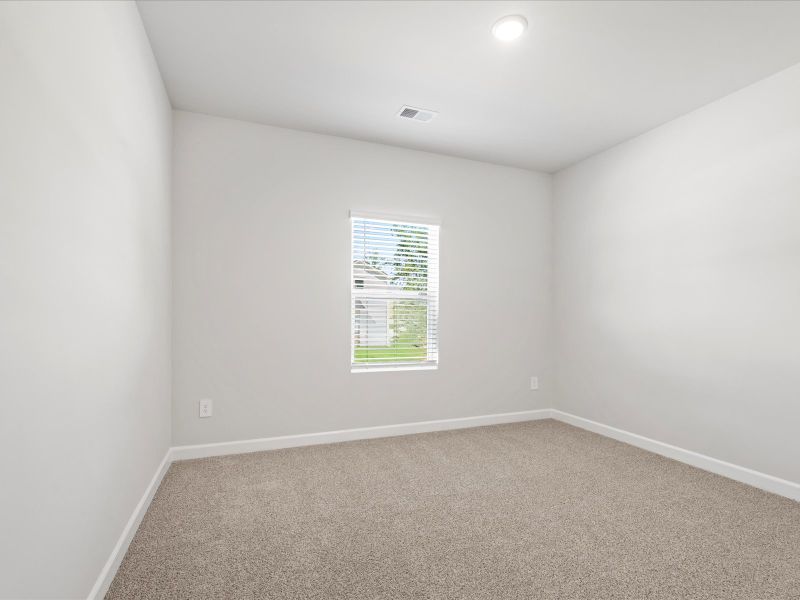 In the primary suite, dual sinks and a walk-in closet simplify busy mornings. White cabinets with white quartz countertops, Bishop Ridge Fresh Pine EVP flooring and carpet in our Balanced (1) Package.