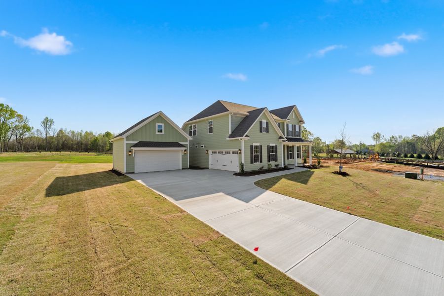 The Savannah plan is a beautiful five-bedroom, three-and-one-half-bathroom home with a two-car side-entry garage and a two-car detached garage with attic space. It features an open layout with luxury vinyl flooring throughout the main-level living areas. As you enter the home, you'll notice the stunning entryway leading to a flex room. Just beyond that is the inviting great room and a spacious kitchen. The open kitchen includes a gourmet electric cooktop and double wall oven—perfect for entertaining friends and family or hosting special holidays and get-togethers. Downstairs, you'll find an impressive primary suite with a walk-in closet, a private water closet, and a large, tiled walk-in shower. Upstairs, there are four generously sized bedrooms with large closets, two full bathrooms, and a spacious bonus area.