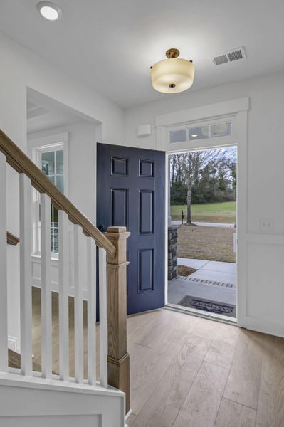 The Brinson is a three-bedroom, two-and-a-half-bath home with an alley garage, home office, formal dining room, spacious family room, designer kitchen with island and pantry, and a covered rear porch. The second floor features all three bedrooms, including the primary bedroom with an attached, five-piece primary bath and large closet, plus an upstairs laundry.