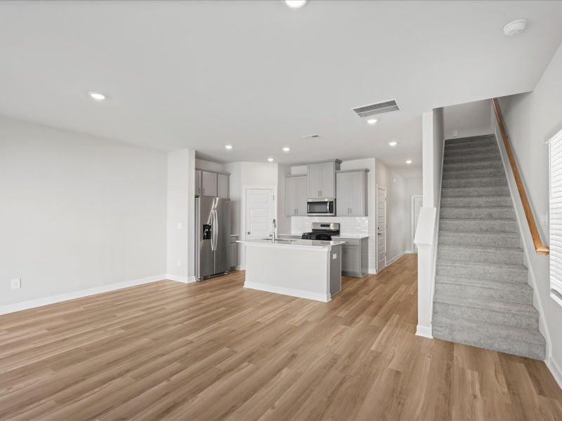 Invite guests over to watch the big game in the spacious second-story loft. The primary suite features dual sinks and a large walk-in closet. Pebble cabinets with white quartz countertops, EVP flooring, and carpet in our Charm Package.