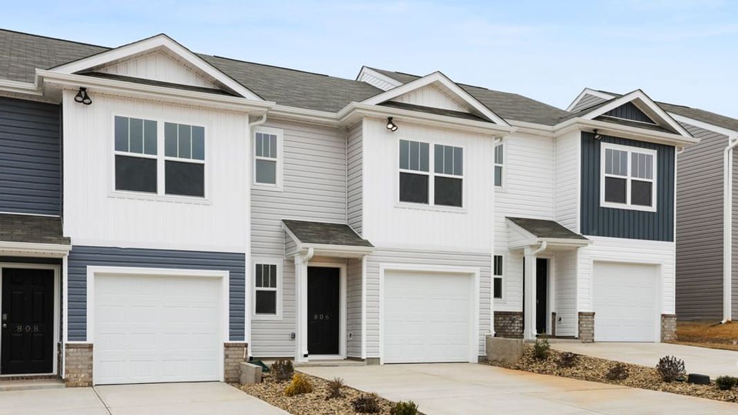 Check out 806 Embark Circle, a beautifully designed townhome in our Covington Village community, featuring three bedrooms, two and a half bathrooms, and a one-car garage. The open-concept layout is perfect for entertaining, ensuring you’re always part of the action. Upon entering, you'll be welcomed by a spacious foyer that leads into the living that features a glass door that seamlessly connects the indoors with the patio, enhancing your living experience. The kitchen provides ample storage and looks over the dining room area.