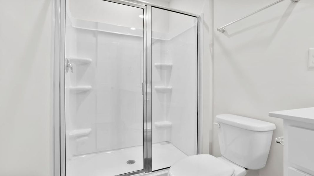 A conveniently located half bathroom is situated off the living room. Moving upstairs, you’ll find two bedrooms, which share a bathroom complete with a vanity and tub. The upstairs laundry room is also ideally located for easy access. On the opposite side of the floor, the primary bedroom features privacy and comfort. The en-suite primary bathroom boasts a double vanity and a walk-in shower with glass panels. The spacious walk-in closet is perfect for additional storage.