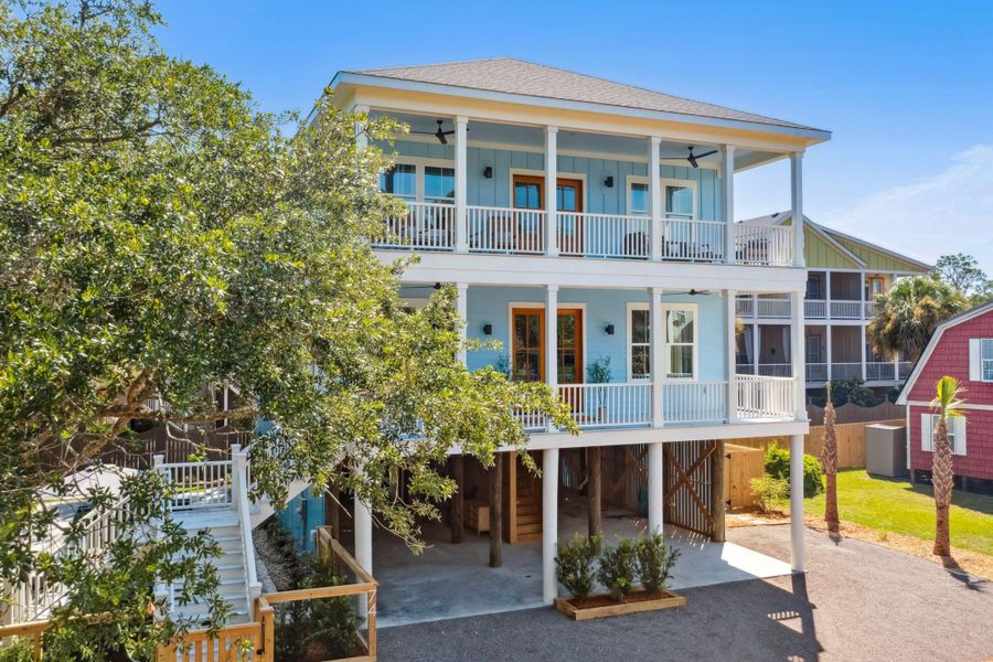 -Double front porches that welcome the evening sunset with a great 2nd floor porch sunset view over the Folly River