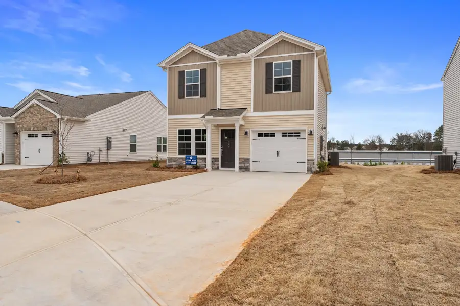 This home features three bedrooms and two and one-half bathrooms. Immediately upon entry, you are greeted by the great room which flows seamlessly into the eat-in and kitchen. A covered patio, laundry room, and powder room finish off the first floor. Upstairs you will find the loft space that connects to the primary suite and two secondary bedrooms. The primary suite has a private bathroom and walk-in closet. Available upgrades for the primary suite include a boxed ceiling and garden tub. The secondary bathroom is conveniently located near the loft space and secondary bedrooms. A one-car garage and optional covered porch complete this floor plan.