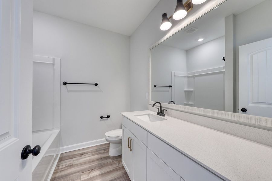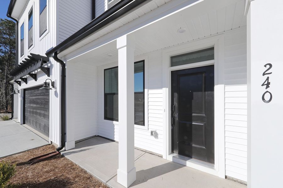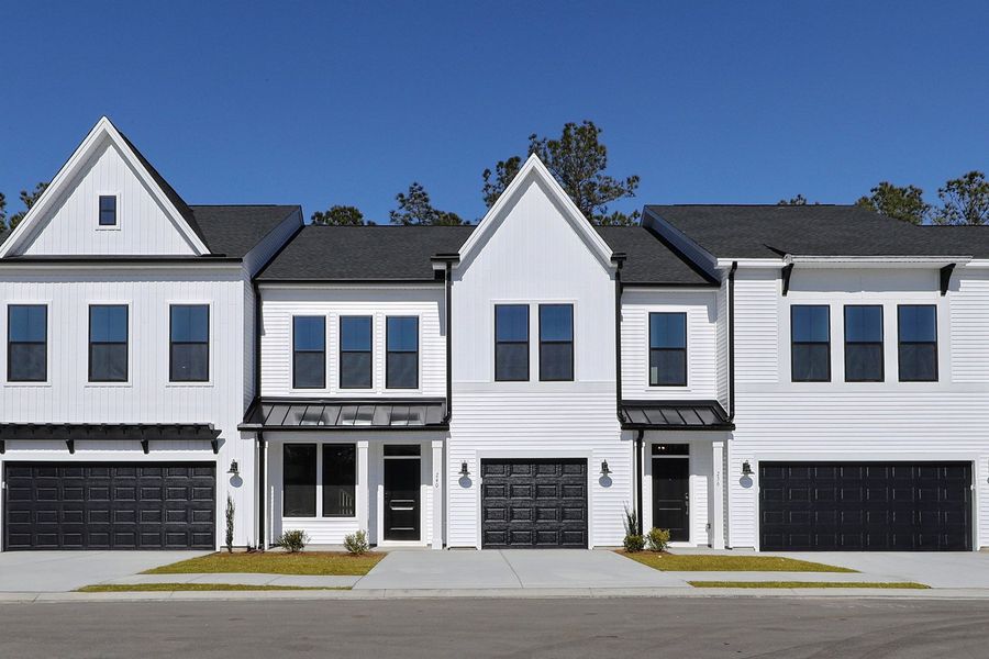 Welcome to the Hyacinth! This carefully crafted interior unit features three bedrooms, two-and-one-half baths, and a spacious loft. From the moment you step inside, the great room—with its soaring two-story ceiling—makes an immediate and striking impression. Expansive windows across both levels fill the space with natural light, while luxury vinyl plank flooring, a wood staircase with decorative railing, and high-end finishes create a refined and pristine aesthetic. The kitchen is designed to impress with white soft-close cabinetry, quartz countertops, a tile backsplash, and a GE stainless steel electric appliance package. Just beyond, the primary bedroom includes a tray ceiling and ceiling fan. The en-suite bath showcases dual sinks with quartz countertops, a tiled shower with a glass enclosure, and a walk-in closet. Step outside to a covered porch overlooking a private treeline—the perfect spot to enjoy your morning coffee. Upstairs, you’ll find two additional bedrooms, a full bath, and a loft that overlooks the impressive two-story great room. A generous unfinished storage room provides space to keep seasonal items organized. A convenient laundry room and half bath at the garage entry complete this beautiful home. Live a laid-back lifestyle and enjoy all that Murrells Inlet has to offer, just minutes from this boutique new community, Bally Castle!