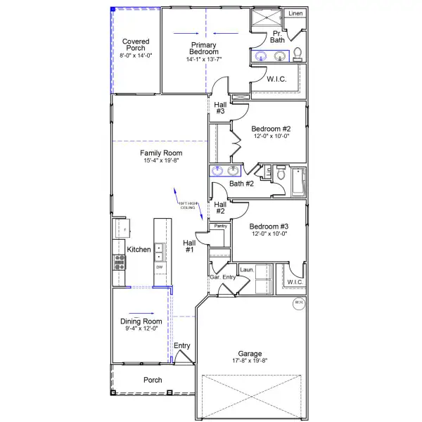 Step inside to find a formal dining room off the entry that flows seamlessly into the open-concept kitchen and great room with soaring vaulted ceilings. The family room extends to a covered rear porch, perfect for indoor-outdoor living. This three-bedroom home includes a primary suite with vaulted ceilings, an upgraded bath featuring a large walk-in shower, dual-sink vanity, and a generous walk-in closet. Two secondary bedrooms share a well-appointed hall bath with dual sinks and a private door separating the vanity area from the shower and toilet—ideal for busy mornings. A roomy laundry space sits just off the two-car garage for everyday ease. With thoughtful details throughout, the Brunswick combines comfort, function, and style in one smart design.