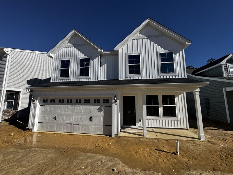 Discover the Lancaster, a beautifully designed two-story home that blends style, comfort, and function. A charming covered front porch sets the tone, leading into a bright foyer with a private home office—perfect for remote work. The open-concept great room features a cozy fireplace, while the chef’s kitchen shines with upgraded granite countertops and a thoughtful pet pad. Upstairs, three spacious secondary bedrooms share a dual-sink hall bath, and the luxurious primary suite impresses with boxed ceilings, an oversized walk-in closet, and a spa-like bathroom complete with a separate soaking tub, walk-in shower, and dual vanities. A two-car garage and elegant finishes throughout make this home a true must-see.