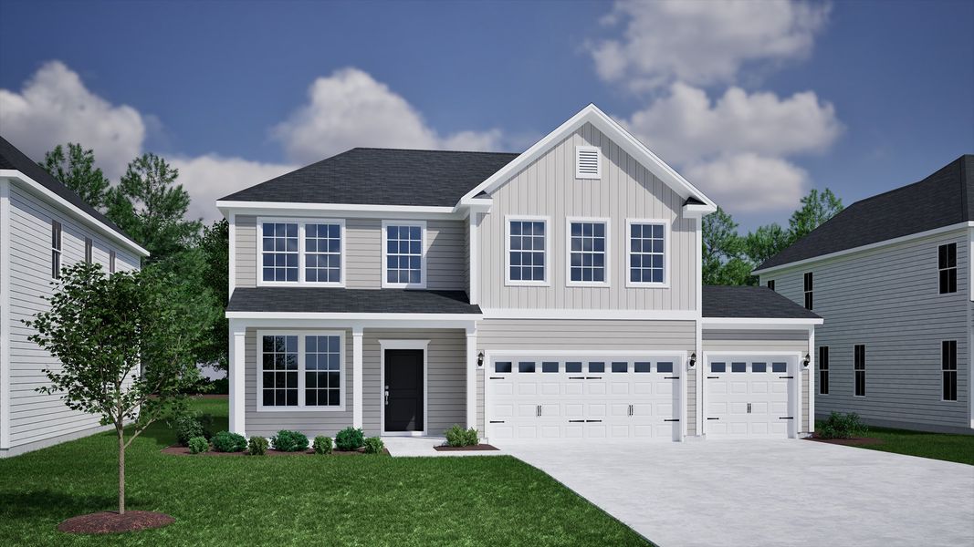The two-story Cooper plan features three bedrooms and two-and-one-half bathrooms. Enter through the front door to be greeted by an office space which opens to an open great room, eat-in, kitchen, and sunroom. The great room offers a fireplace, and access to the covered porch. The flex space can be utilized as a dining room or office. This home has a spacious three car garage. A powder room completes the first floor. A loft space, the primary suite, and two secondary bedrooms can all be found on the second floor. The primary suite has an boxed ceiling and large walk in shower to meet your needs. The two secondary bedrooms, each with their own walk-in closets, share a full bathroom with dual sinks.